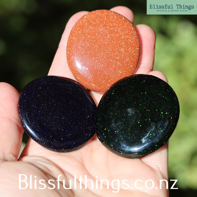 Blue Goldstone tends to sparkle the most, while the golden-brown variety carries a more earthy glow.