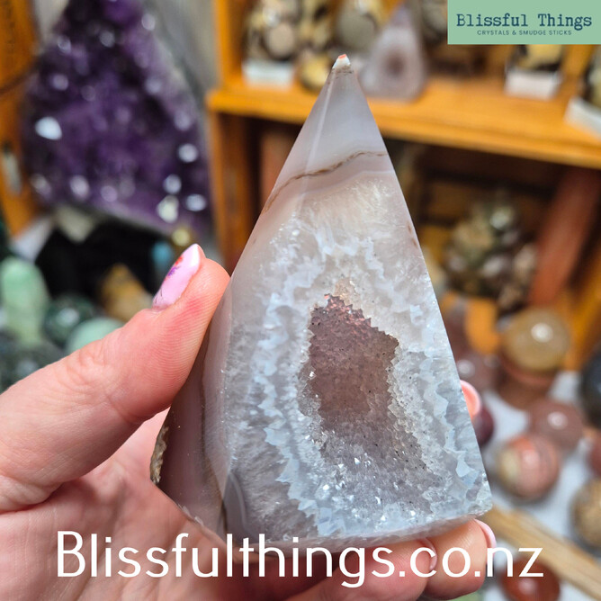 Here at Blissful Things, we love how Agate Druze captures both earth and sparkle — solid grounding energy meeting high-vibrational light. Whether you’re drawn to soft pastel hues or deep earthy tones, each piece has its own story and energy signature.