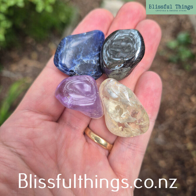 At Blissful Things, we offer a beautiful range of Hematite, Amethyst, Citrine, Amethystine, and Sodalite — available as tumble stones, palm stones, and small sets perfect for students.