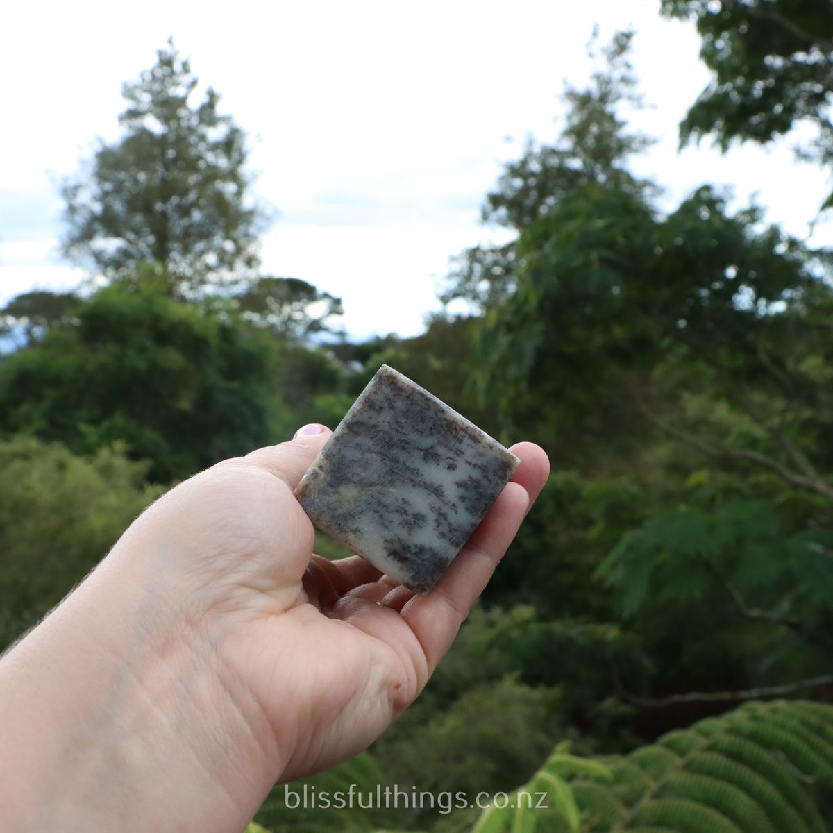 Dendritic Opal, sometimes referred to as Merlinoite, is a variety of common opal that contains tree- or fern-like inclusions called dendrites, typically composed of manganese or iron oxides. Unlike precious opal, it lacks a play of color but is prized for its striking, natural patterns that resemble delicate landscapes or ink paintings. Dendritic Opal forms in silica-rich environments and is composed primarily of hydrated silicon dioxide. Metaphysically, it is considered a stone of clarity, growth, and spiritual insight. Often associated with the third eye and crown chakras, Dendritic Opal is believed to enhance intuition, support shadow work, and bring balance during times of transformation. It is also thought to aid in connecting with nature and the subconscious, making it a powerful tool for meditation and personal exploration.