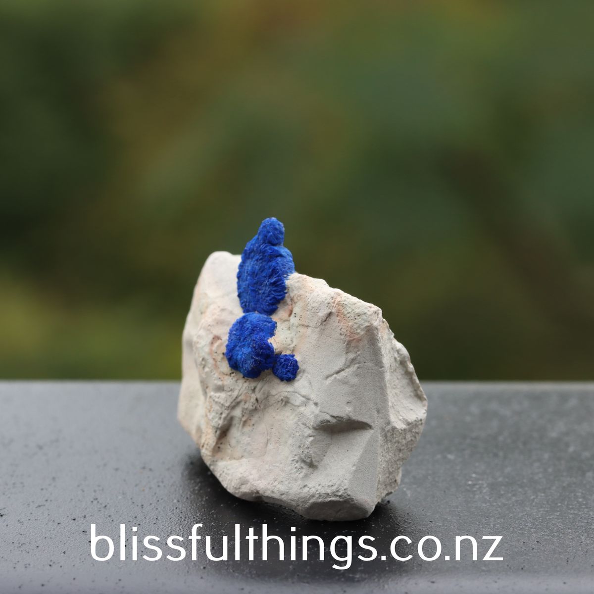 Rare and captivating Azurite Suns, a truly unique formation that stands out in mineral collecting. These extraordinary specimens are known to form exclusively in one location globally, nestled between layers of clay known as Kaolinite. The striking cobalt blue of the Azurite contrasts beautifully with the white Kaolinite, creating a mesmerizing visual effect that is both rare and stunning. Metaphysically, Azurite Suns are celebrated for their powerful energy and spiritual significance. Azurite is renowned for enhancing intuition, mental clarity, and spiritual insight, while its Sun-like formation symbolizes illumination and enlightenment. This rare formation not only serves as a captivating display piece but also as a potent tool for those seeking deeper wisdom and transformative spiritual growth. For any serious mineral enthusiast or spiritual seeker, an Azurite Sun is truly a must-have treasure.