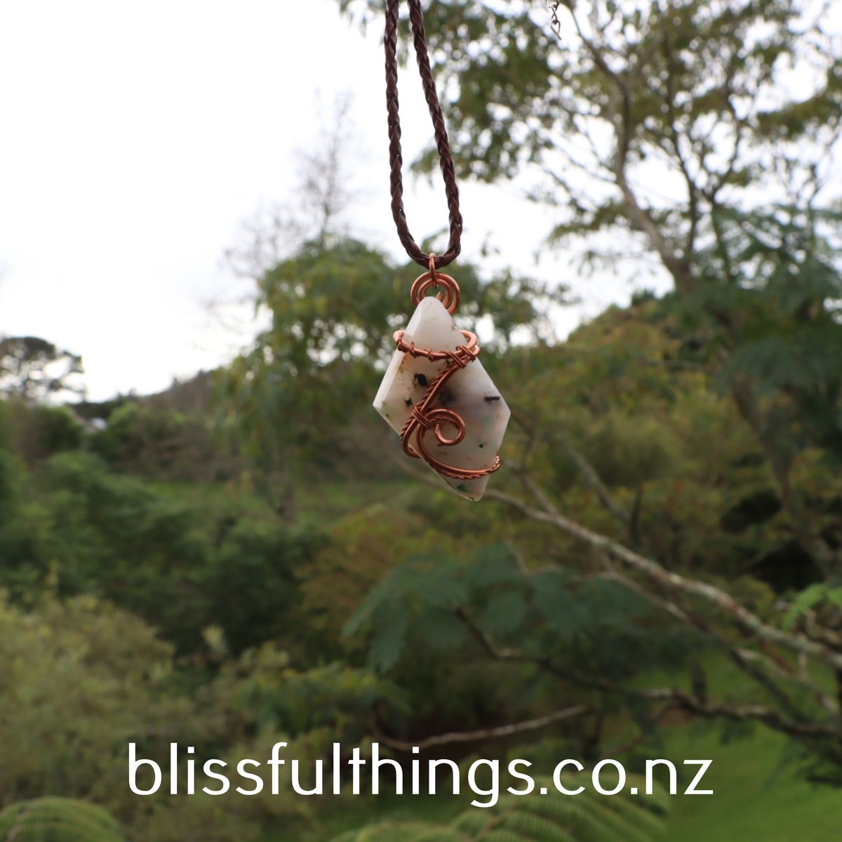 Wire wrapped in copper creating a lovely contrasting pendant.