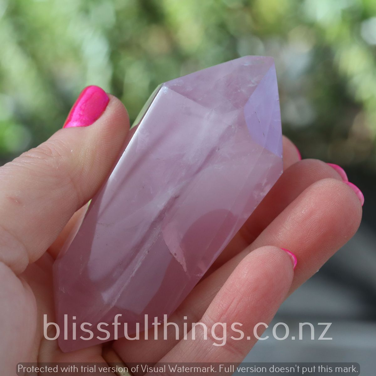 Beautiful Madagascan Rose Quartz, Double Terminated Wand. Great size to hold.