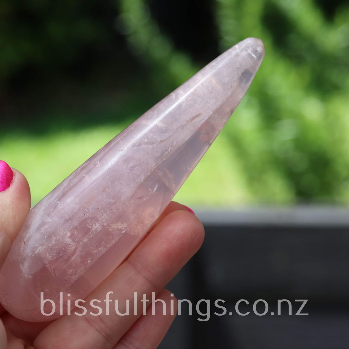 Being rounded at both ends, this Rose Quartz makes for a great massage wand for pressure points. Great shape to hold also.