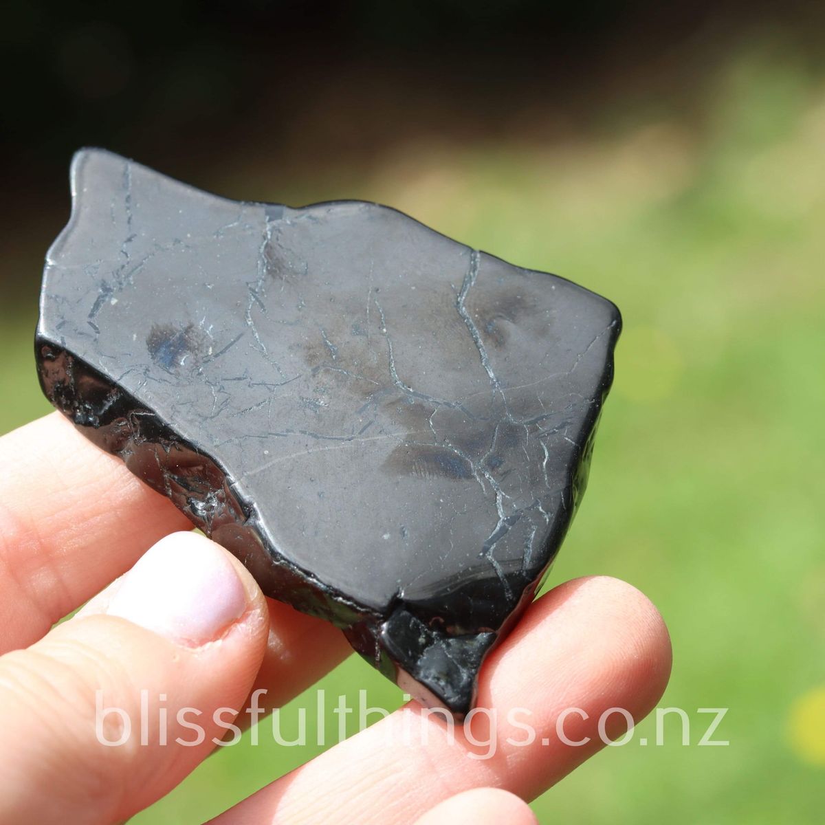 Shungite is a unique, carbon-rich mineral primarily found in Russia but can come from other parts of the world. Scientifically, it is notable for its high carbon content, which consists mainly of carbon molecules in the form of fullerenes, a structure of carbon atoms arranged in a hollow sphere. Metaphysically, Shungite is considered a powerful stone in many spiritual traditions, believed to provide grounding and protection against electromagnetic radiation, negative energy, and environmental stress. While scientific evidence supporting these claims is limited, Shungite remains a popular tool for those seeking balance and harmony in their surroundings. Please note that Shungite is a soft mineral. Like all gemstones and crystals, they are made up of various minerals and elements, formed over 1000s of years. In some cases, crystals like Shungite have other minerals within them. Because of the softness of this mineral and the variations of what types of minerals and other heavy trace elements may or may not be present, we do not recommend Shungite for water purification.