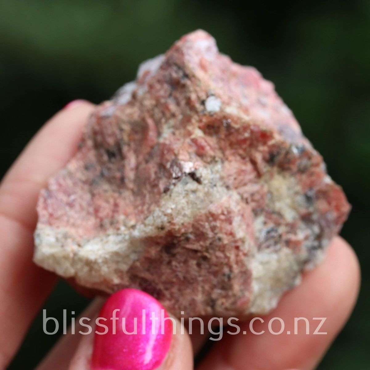 Rhodonite is a manganese inosilicate mineral, typically pink to red with striking black veining caused by manganese oxide inclusions. It forms in metamorphic environments and is valued both as a gemstone and for its distinctive patterns. Scientifically, its structure and composition make it an important indicator of specific geological conditions. Metaphysically, rhodonite is known as a stone of compassion and emotional healing. It resonates strongly with the heart chakra, helping to soothe past wounds, dissolve resentment, and encourage forgiveness. Rhodonite supports emotional balance, self-love, and grounded action, making it a powerful ally for healing relationships and fostering inner peace.