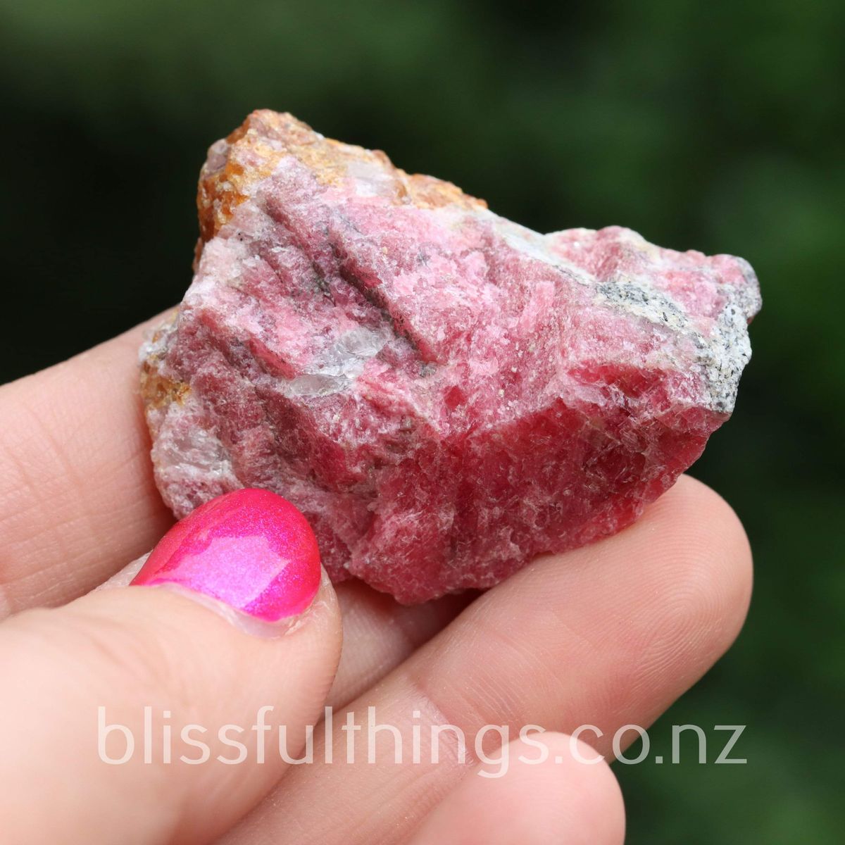 Rhodonite is a manganese inosilicate mineral, typically pink to red with striking black veining caused by manganese oxide inclusions. It forms in metamorphic environments and is valued both as a gemstone and for its distinctive patterns. Scientifically, its structure and composition make it an important indicator of specific geological conditions. Metaphysically, rhodonite is known as a stone of compassion and emotional healing. It resonates strongly with the heart chakra, helping to soothe past wounds, dissolve resentment, and encourage forgiveness. Rhodonite supports emotional balance, self-love, and grounded action, making it a powerful ally for healing relationships and fostering inner peace.
