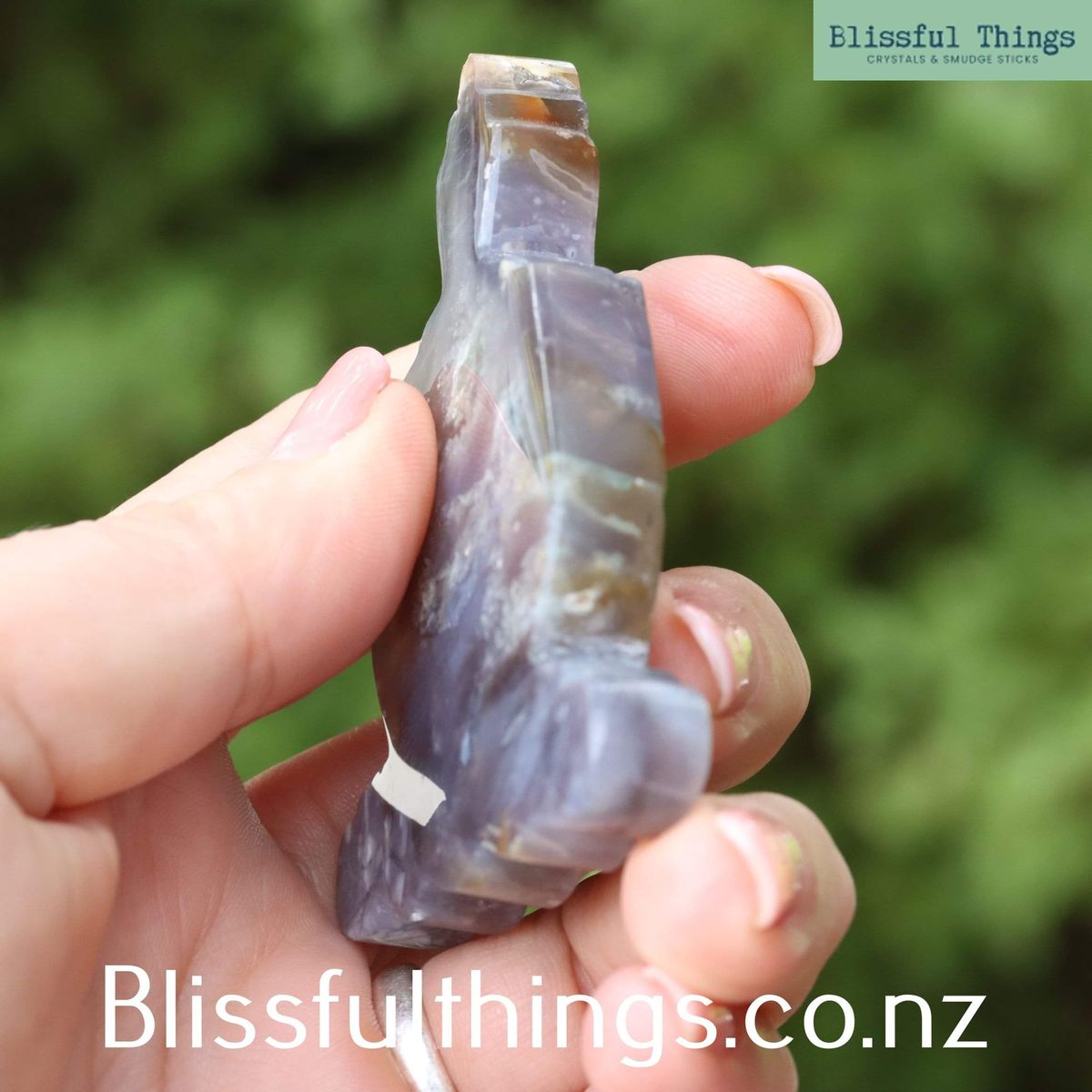 Plume Agate is a type of chalcedony, a crystalline form of quartz, and its unique appearance results from mineralized deposits that create the plume effect. Metaphysically, Plume Agate is known for its gentle, calming energy. It is said to bring emotional healing, encourage personal growth, and promote a deep sense of inner peace. Many believe it enhances creativity and intellectual clarity, making it a great stone for those seeking inspiration and mental focus. Often associated with the crown chakra, Plume Agate is thought to help connect the wearer to higher consciousness and spiritual wisdom.