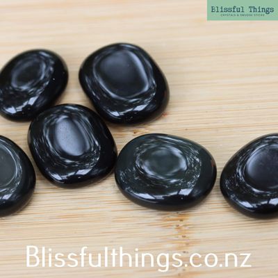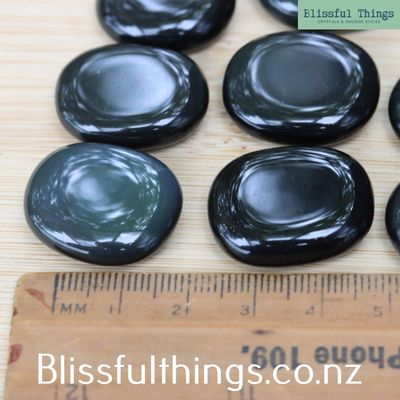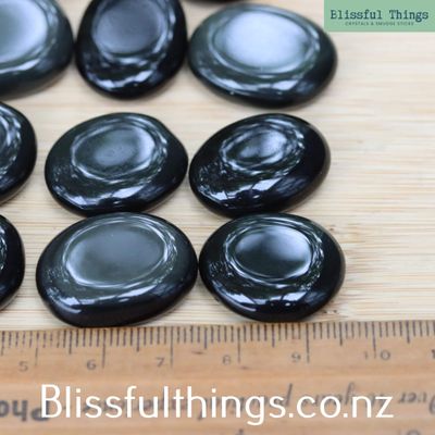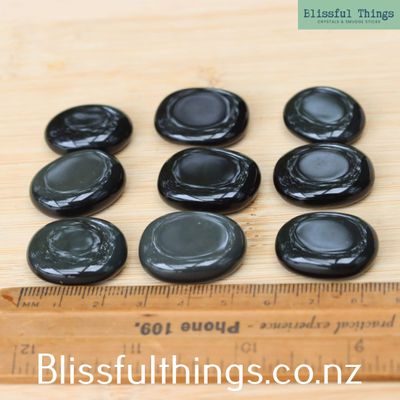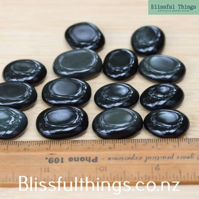 Sheen Obsidian Mini Flat Stones are sold per piece and selected randomly upon purchase. Please refer to the photo for size.