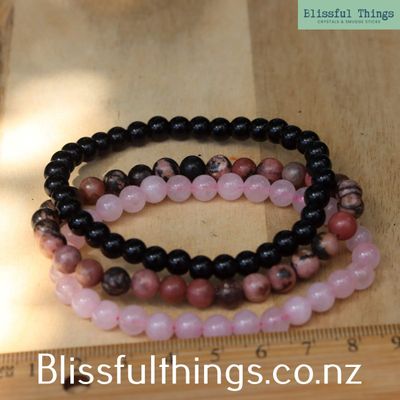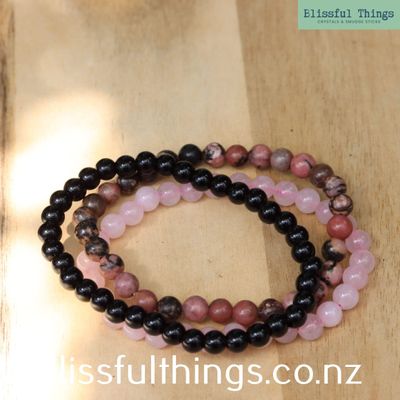 Bracelet Set, Rose Quartz, Black Obsidian and Rhodonite