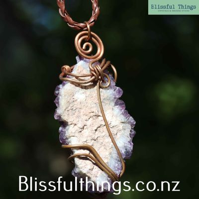 Amethyst Crystal Cluster Copper Wire Wrapped Necklace