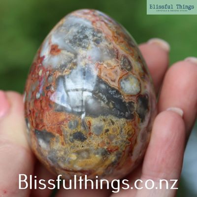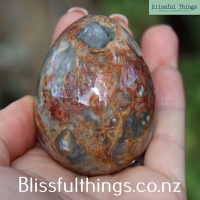 Crazy Lace Agate, also known as the "Laughter Stone" or "Happy Lace," is a captivating variety of agate, known for its intricate patterns of swirling colors such as reds, pinks, oranges, yellows, and browns. Scientifically, it is a chalcedony, a form of quartz, with a banded structure formed from mineral-rich solutions that fill cavities in volcanic rocks. The unique swirling patterns are a result of the minerals such as iron and manganese interacting with the silica in the stone.