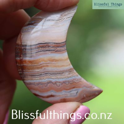 Crazy Lace Agate, also known as the "Laughter Stone" or "Happy Lace," is a captivating variety of agate, known for its intricate patterns of swirling colors such as reds, pinks, oranges, yellows, and browns. Scientifically, it is a chalcedony, a form of quartz, with a banded structure formed from mineral-rich solutions that fill cavities in volcanic rocks. The unique swirling patterns are a result of the minerals such as iron and manganese interacting with the silica in the stone.