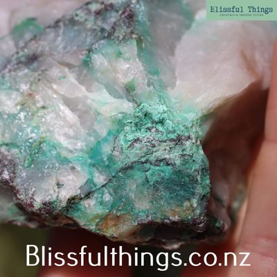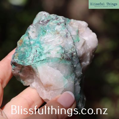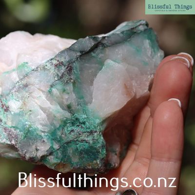 Ajoite in Quartz Matrix is a highly sought-after and rare mineral combination, known for its striking blue-green inclusions within clear or milky quartz. Ajoite itself is a hydrous sodium potassium copper aluminum silicate with the formula (Na,K)Cu₇AlSi₉O₂₄(OH)₆·3H₂O, typically forming in radiating fibrous aggregates. Scientifically, this material often includes associated secondary copper minerals such as Malachite, Epidote, Piedmontite, Bornite, and Cuprite, enhancing both its mineralogical interest and visual appeal. This particular rough material has been hand-selected from the 5th Shaft mine dumpings of the historic Messina Copper Mines in South Africa—an area renowned for producing some of the world’s finest Ajoite specimens. Recently reappearing on the market after years of scarcity, these specimens are a rare find. Metaphysically, Ajoite is revered for its high vibration and heart-centered energy. It is believed to aid emotional healing, encourage forgiveness, and connect one to divine feminine energy. When found within quartz, its energetic properties are said to be amplified, promoting inner peace, spiritual insight, and alignment with higher consciousness.