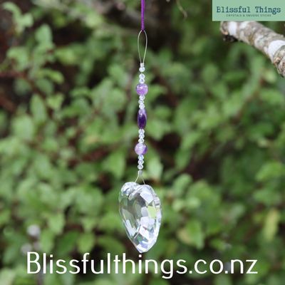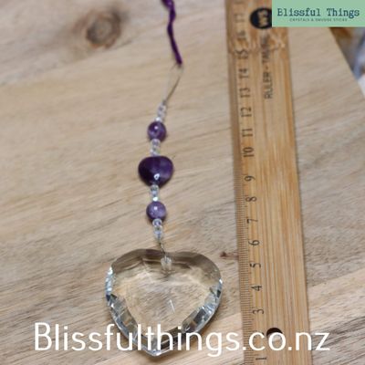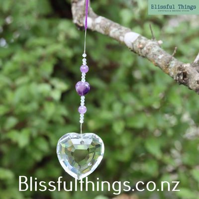 Rainbow Catcher Heart 44mm with Amethyst Beads.