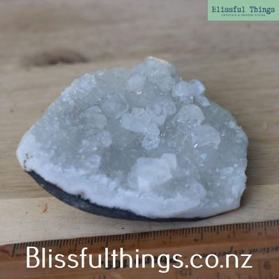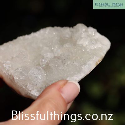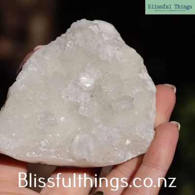Apophyllite is a silicate mineral, typically found in volcanic rocks, and is part of the phyllosilicate family. Its chemical composition is most often potassium calcium fluorosilicate hydroxide (KCa₄Si₈O₂₀(F,OH)·8H₂O), and it commonly forms in transparent to translucent pyramidal or tabular crystals, often with a high luster and natural facets. It has a relatively low hardness of around 4.5 to 5 on the Mohs scale and is prized for its ability to form large, well-structured crystals, frequently in association with zeolites. Metaphysically, Apophyllite is known as a stone of spiritual connection and insight. It is believed to carry a high vibration that supports clarity, truth, and inner vision, making it a favorite for meditation and energy healing. Many practitioners use Apophyllite to open the third eye and crown chakras, inviting higher guidance and calming anxiety with its uplifting and purifying energy.