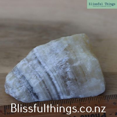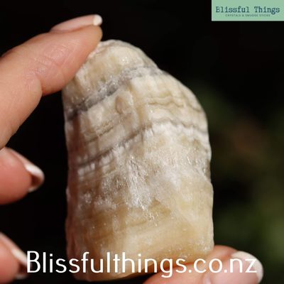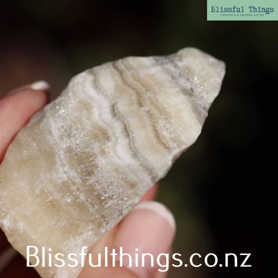 Zebra Calcite is a striking variety of calcite (CaCO₃) characterized by its banded patterns of black, white, grey, and sometimes yellow or beige, which resemble the stripes of a zebra. These contrasting layers are formed by natural inclusions and mineral impurities during the crystal’s growth, giving each piece a unique appearance. With a Mohs hardness of 3, it is relatively soft and typically forms in sedimentary environments. Metaphysically, Zebra Calcite is seen as a stone of transformation, balance, and emotional clarity. It is believed to help dissolve fear, self-doubt, and outdated mental patterns, making space for optimism, courage, and inner peace. Resonating especially with the root and solar plexus chakras, it offers grounding energy while gently encouraging personal empowerment and forward movement.