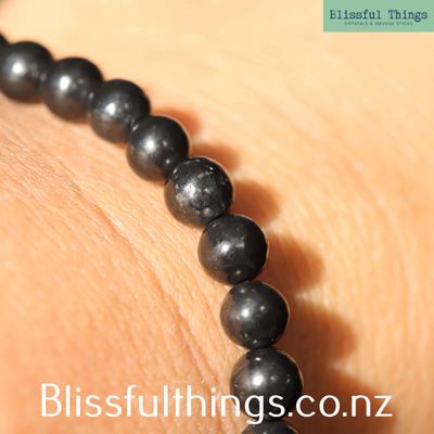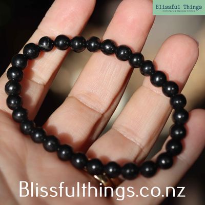 Shungite Bracelet 6mm beads strung on elastic.