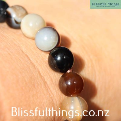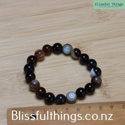 Sardonyx Bracelet 10mm with beads strung on elastic.