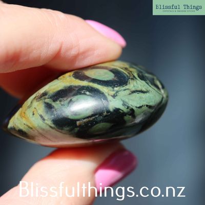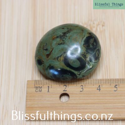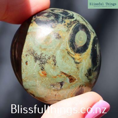 Kambaba Jasper, not to be confused with Nebula stone, also known as "Crocodile Jasper," is a unique and visually striking variety of orbicular fossil that features circular patterns and shades of green, black, and brown, which often resemble the skin of a crocodile. Kambaba Jasper are thought to originate from the presence of fossilised Stromatolites, which are ancient, layered microbial structures formed by the activity of cyanobacteria over billions of years. These Stromatolites represent some of the earliest evidence of life on Earth, making Kambaba Jasper a beautiful stone with profound historical and geological significance.