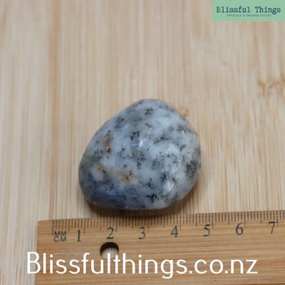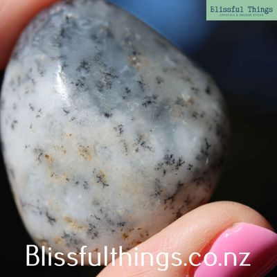 Dendritic Opal, sometimes referred to as Merlinite, is a variety of common opal that contains tree- or fern-like inclusions called dendrites, typically composed of manganese or iron oxides. Unlike precious opal, it lacks a play of color but is prized for its striking, natural patterns that resemble delicate landscapes or ink paintings. Dendritic Opal forms in silica-rich environments and is composed primarily of hydrated silicon dioxide. Metaphysically, it is considered a stone of clarity, growth, and spiritual insight. Often associated with the third eye and crown chakras, Dendritic Opal is believed to enhance intuition, support shadow work, and bring balance during times of transformation. It is also thought to aid in connecting with nature and the subconscious, making it a powerful tool for meditation and personal exploration.