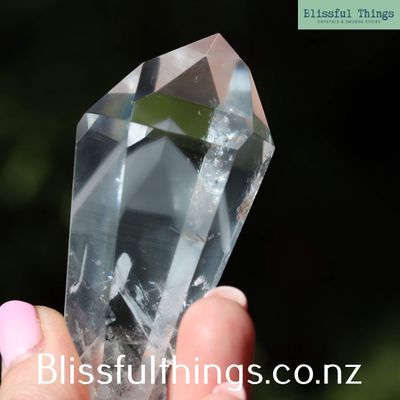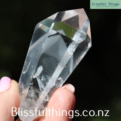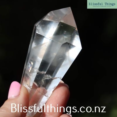 Metaphysically, clear quartz is often referred to as the "Master Healer" due to its ability to amplify energy and intentions. It is believed to enhance clarity of thought, aid in concentration, and promote emotional stability. The double-terminated shape is especially valued for its unique properties: it is thought to facilitate the flow of energy in both directions, making it an ideal tool for healing and meditation. This Crystal configuration has been said to connect the user to higher realms via meditation. It is often used in energy work with the idea of balancing and harmonizing the energy of individuals or environments.