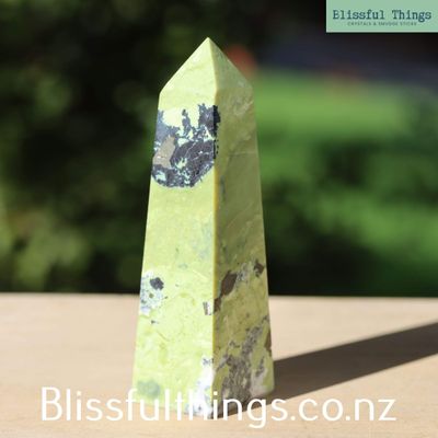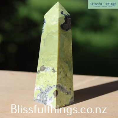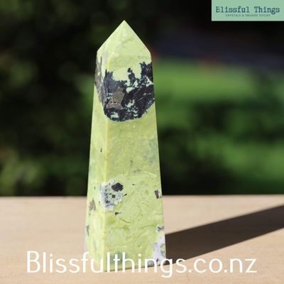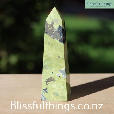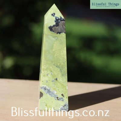 Serpentine and Pyrite Tower/Oblisk, Cut and Polished.