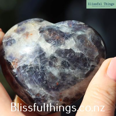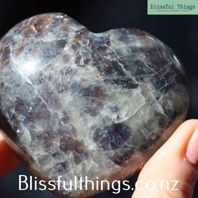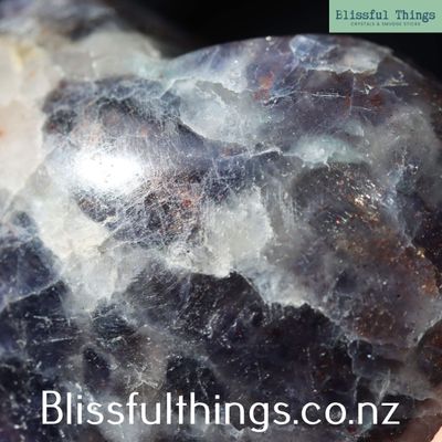 Iolite and Sunstone is a rare and enchanting combination of two distinct feldspar-related minerals found naturally together, creating a unique stone that carries the energetic qualities of both. Iolite, with its deep blue to violet hues, is known as a stone of vision and inner wisdom. Scientifically, it is a magnesium aluminium silicate and exhibits strong pleochroism—appearing different colours from different angles. Metaphysically, Iolite stimulates the third eye, enhancing intuition, mental clarity, and spiritual insight.