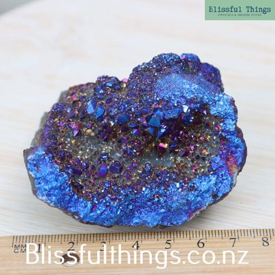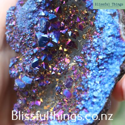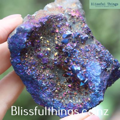 Rainbow Aura Quartz, also known as Titanium Aura Quartz, is a strikingly colorful crystal created through a process called vapor deposition, where titanium and other metal oxides are bonded to natural clear quartz in a high-temperature vacuum chamber. This treatment gives the quartz its signature iridescent sheen, displaying shimmering hues of blue, purple, pink, and gold. Scientifically, the process enhances the crystal’s durability while maintaining the amplifying properties of quartz. Metaphysically, Rainbow Aura Quartz is associated with all chakras, especially the third eye and crown, promoting spiritual insight, energy alignment, and emotional balance. It is believed to uplift the spirit, encourage joy, and create a protective energy shield, making it a powerful tool for meditation, creativity, and personal transformation.