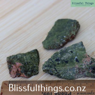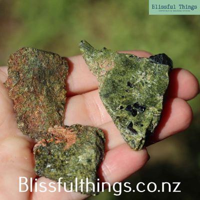 Epidote and Peach Feldspar (commonly seen together as Unakite) with Black Tourmaline is a nurturing yet empowering crystal combination. Scientifically, Unakite is a blend of green Epidote and pink-orange Feldspar, often with traces of Quartz, while Black Tourmaline (Schorl) is a borosilicate mineral rich in iron. This trio brings together earthy grounding and emotional healing. Metaphysically, Unakite is known for encouraging gentle release of emotional blockages, promoting balance, patience, and self-love. The Epidote component supports personal growth and helps clear stagnant energy, while Peach Feldspar is associated with heart healing and feminine energy. Black Tourmaline adds a strong grounding force, offering energetic protection and helping to keep one centred. Together, this combination supports emotional well-being, grounded growth, and a steady path toward inner harmony.