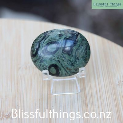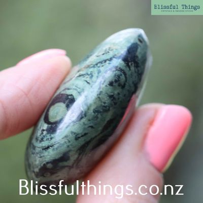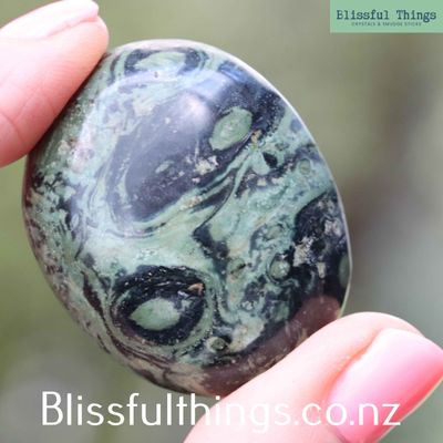 Kambaba Jasper, not to be confused with Nebula stone, also known as "Crocodile Jasper," is a unique and visually striking variety of orbicular fossil that features circular patterns and shades of green, black, and brown, which often resemble the skin of a crocodile.  Kambaba Jasper are thought to originate from the presence of fossilised Stromatolites, which are ancient, layered microbial structures formed by the activity of cyanobacteria over billions of years. These Stromatolites represent some of the earliest evidence of life on Earth, making Kambaba Jasper a beautiful stone with profound historical and geological significance.Metaphysically, Kambaba Jasper is regarded as a powerful healing stone, known for its grounding and calming properties. It is believed to connect deeply with the Earth, helping to stabilise emotions and promote a sense of peace and tranquillity. The stone is often used to support the heart and root chakras, assisting in emotional healing, stress relief, and the release of negative energies. Additionally, Kambaba Jasper is thought to enhance mental clarity, boost creativity, and encourage spiritual growth. Because of its ancient connections to microbial life through the Stromatolites, it is also seen as a symbol of longevity, resilience, and the enduring power of life. Many practitioners use Kambaba Jasper for meditation, as it is thought to help deepen one's connection to the Earth and to enhance intuition and insight