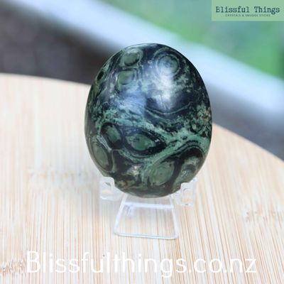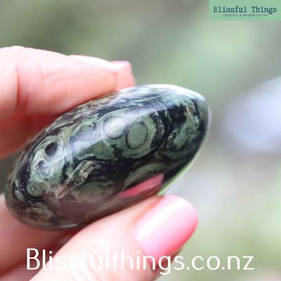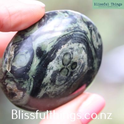 Kambaba Jasper, not to be confused with Nebula stone, also known as "Crocodile Jasper," is a unique and visually striking variety of orbicular fossil that features circular patterns and shades of green, black, and brown, which often resemble the skin of a crocodile.  Kambaba Jasper are thought to originate from the presence of fossilised Stromatolites, which are ancient, layered microbial structures formed by the activity of cyanobacteria over billions of years. These Stromatolites represent some of the earliest evidence of life on Earth, making Kambaba Jasper a beautiful stone with profound historical and geological significance. Metaphysically, Kambaba Jasper is regarded as a powerful healing stone, known for its grounding and calming properties. It is believed to connect deeply with the Earth, helping to stabilise emotions and promote a sense of peace and tranquillity. The stone is often used to support the heart and root chakras, assisting in emotional healing, stress relief, and the release of negative energies. Additionally, Kambaba Jasper is thought to enhance mental clarity, boost creativity, and encourage spiritual growth. Because of its ancient connections to microbial life through the Stromatolites, it is also seen as a symbol of longevity, resilience, and the enduring power of life. Many practitioners use Kambaba Jasper for meditation, as it is thought to help deepen one's connection to the Earth and to enhance intuition and insight