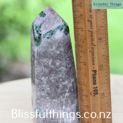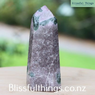 Green Tourmaline in Lepidolite is a beautiful and dynamic mineral pairing that offers both visual appeal and powerful energy. The Lepidolite in this specimen is a solid variety, making it suitable for stone cutting and lapidary work, unlike the more common flaky forms. Scientifically, Green Tourmaline (Verdelite) is a borosilicate mineral rich in iron and lithium, while Lepidolite is a lithium-rich mica known for its calming purple tones. Metaphysically, Green Tourmaline is linked to the heart chakra, promoting emotional balance, compassion, and a renewed sense of vitality. Lepidolite offers stress relief and emotional stability, helping to ease anxiety and support peaceful transitions. Together, they create a nurturing combination of strength and serenity—ideal for emotional healing, energetic balance, or beautiful crafted pieces.