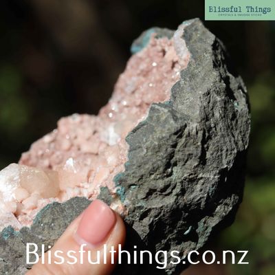 Pink Heulandite is a delicate and rare member of the zeolite group, a hydrated calcium and sodium aluminosilicate with the formula (Ca,Na)₂-₃Al₃(Al,Si)₂Si₁₃O₃₆·12H₂O. It typically forms in radiating clusters or tabular crystals, often found within basalt cavities. Its soft pink colouring is due to trace minerals and varies from pale blush to a deeper rose, depending on the locality—often sourced from India or the United States. With a Mohs hardness of about 3.5 to 4, it is relatively soft and requires careful handling.