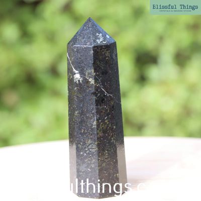 Coppernite, also known as Coppernite Stone, is a dark, striking mineral with metallic flecks—often copper or iron-based—that shimmer against a deep black or brown matrix. It is a type of gabbro or basaltic stone infused with conductive metallic inclusions, giving it a distinctive, earthy appearance. Scientifically, it forms through volcanic processes and is valued for its rich mineral content, including traces of copper, which enhance its visual and energetic appeal. Metaphysically, Coppernite is considered a stone of strength, grounding, and vitality. It is believed to stimulate the root chakra, helping one feel centred, protected, and energised. Often used to clear energetic blockages and enhance intuitive flow, Coppernite supports both physical stamina and mental clarity, making it a powerful ally for personal empowerment and transformation.
