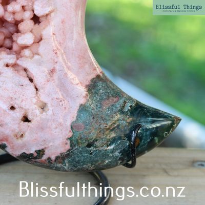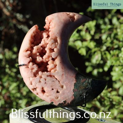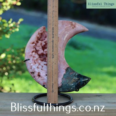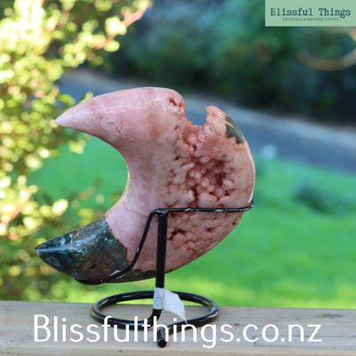 Pink Amethyst Moon with Bloodstone on Stand 1.79kg
