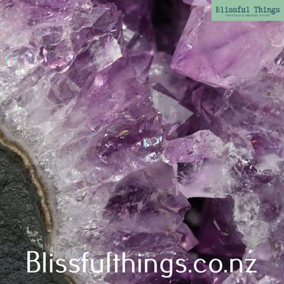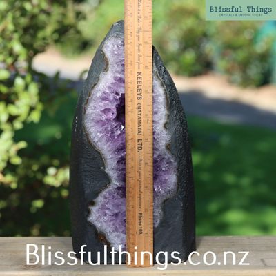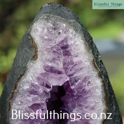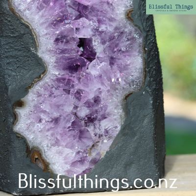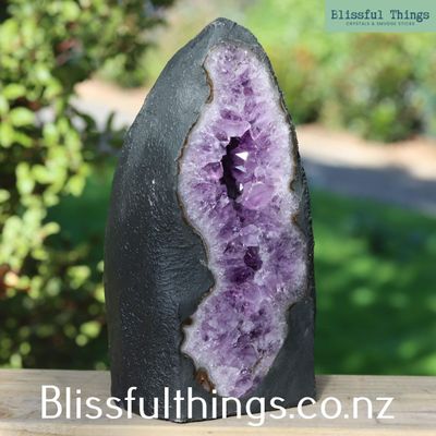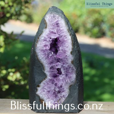 This beautiful Amethyst geode comes from Brazil and features natural rainbow inclusions that shimmer when the light hits just right (see photos). A solid and well-formed piece with rich purple colour—perfect for display or crystal healing spaces.