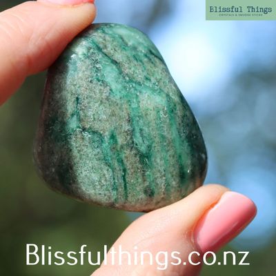 Fuchsite Tumble Polished is sold per piece and selected at random when purchased. Please refer to photo for size.