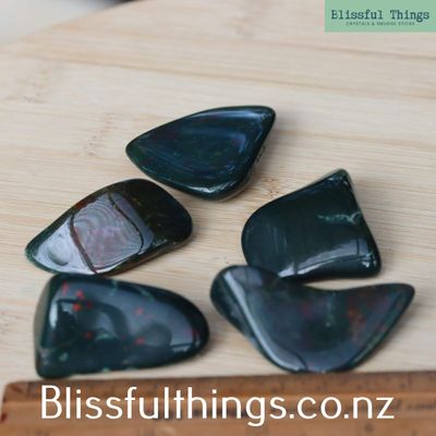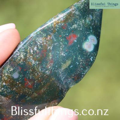 Bloodstone, also known as Heliotrope, is a variety of cryptocrystalline quartz—specifically a form of chalcedony—that is typically dark green with distinctive red or brownish-red speckles caused by iron oxide inclusions, such as hematite. Scientifically, it is composed of silicon dioxide and forms through the deposition of silica from groundwater in cavities or cracks, often in volcanic rocks. The red spots, which resemble drops of blood, inspired the stone’s historical and mystical name. Metaphysically, Bloodstone is known as a stone of courage, vitality, and protection. It is associated with the root and heart chakras, believed to strengthen physical endurance, purify the blood, and promote resilience during times of challenge. Traditionally used by warriors and healers, it is said to enhance decision-making, clear confusion, and ground spiritual energies into the body, offering both strength and stability.