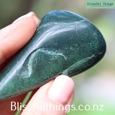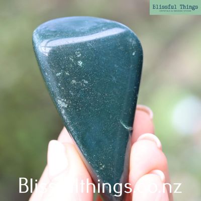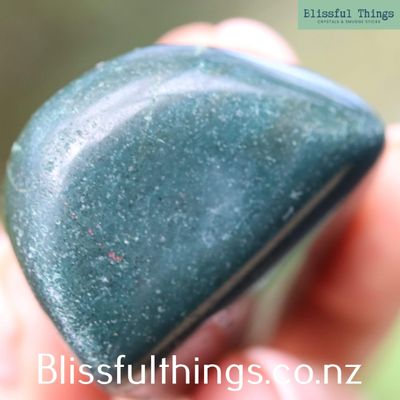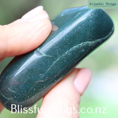 Tumbled in NZ, Stone from India. This Bloodstone is displaying more signs of Green Jasper (no red dots), but from the same deposits as the other Indian Bloodstone stocked.