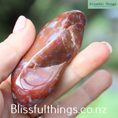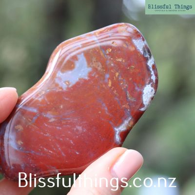 This Red jasper is mainly from the Coromandel of New Zealand. Having been tumbled in NZ, some parts of the jasper have not been fully polished. This is reflected in the price.