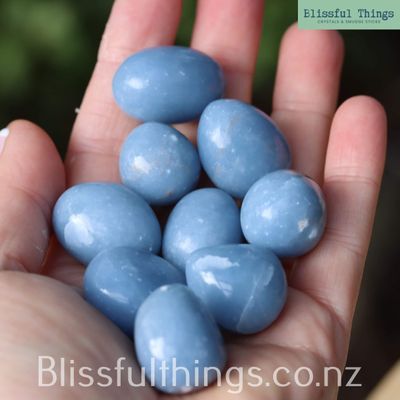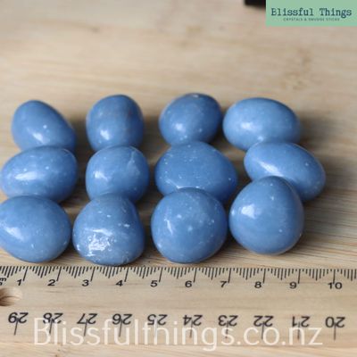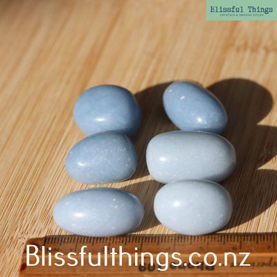 Angelite Tumble Polished is priced per piece and selected at random when purchased. Please refer to photo for size.