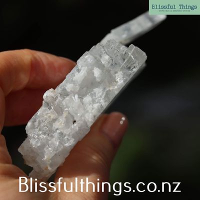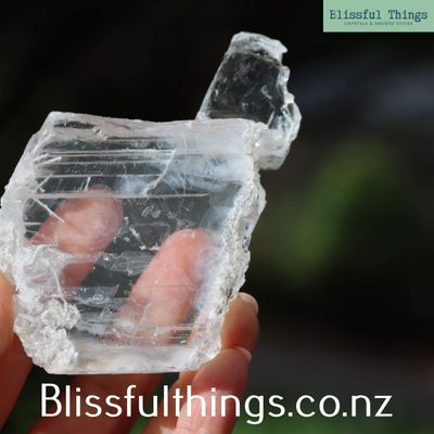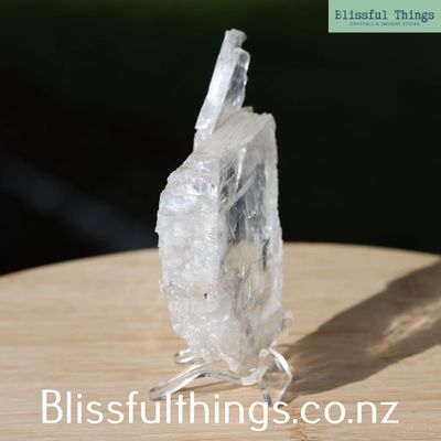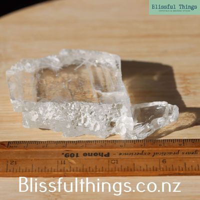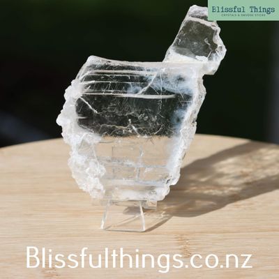 Window Selenite or Clear Selenite is a translucent variety of gypsum, composed of calcium sulfate dihydrate (CaSO₄·2H₂O). It forms in long striated blades, and is known for its softness—ranking only 2 on the Mohs scale. Selenite should never be cleansed with water as it may weaken the structure.