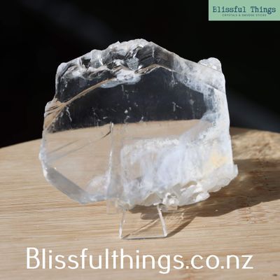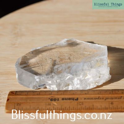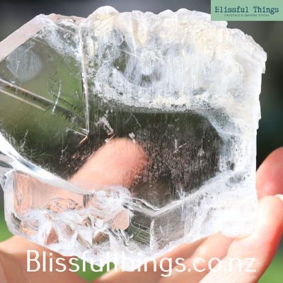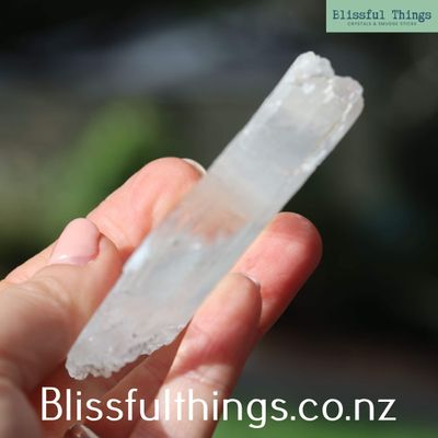 Window Selenite or Clear Selenite is a translucent variety of gypsum, composed of calcium sulfate dihydrate (CaSO₄·2H₂O). It forms in long striated blades, and is known for its softness—ranking only 2 on the Mohs scale. Selenite should never be cleansed with water as it may weaken the structure.