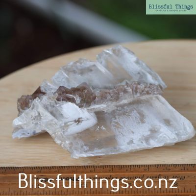 Window Selenite or Clear Selenite is a translucent variety of gypsum, composed of calcium sulfate dihydrate (CaSO₄·2H₂O). It forms in long striated blades, and is known for its softness—ranking only 2 on the Mohs scale. Selenite should never be cleansed with water as it may weaken the structure.