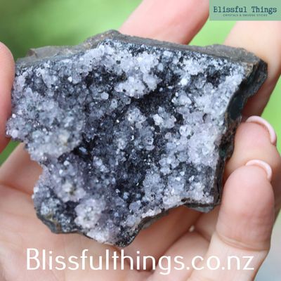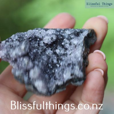 Black amethyst is a rare and striking crystal, featuring tiny druzy quartz crystals on a dark chalcedony base, with colours ranging from deep purple to nearly black. Originating from South America, it combines the calming energy of amethyst with the protective, grounding qualities of black stones. Beloved for meditation, spiritual awakening, and emotional healing, black amethyst helps release negative patterns while providing stability and shielding against unwanted energies. Its unique formation and dark, mysterious beauty make it a truly special stone.
