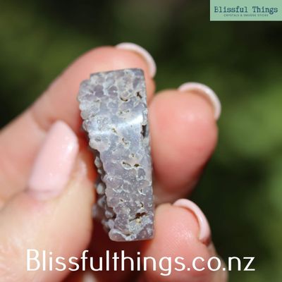 This striking gem, Grape Agate, is known for its Botrydal-like grape features. Also known as Purple Chalcedony, it has become a very collectable mineral in recent years. It is celebrated for its soothing energy and powerful healing properties. Perfect for meditation and energy work, and as a beautiful decorative piece, Grape Agate brings tranquillity and balance to your space.