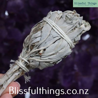 Theses Mini White Sage Smudge Stick is hand-harvested in the southern Californian desert and bound with natural cotton. Each bundle comes from private, family-managed land where wild sage has been respectfully tended and sustainably gathered for generations.