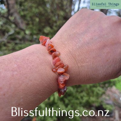 Price is for one Carnelian Chip Bracelet as shown in the photo and will be similar to what is in the photo. Standard size.