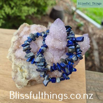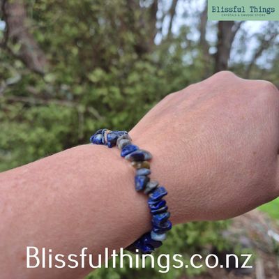 Price is for one Lapis Lazuli Chip Bracelet as shown in the photo and will be similar to what is in the photo. Standard size.